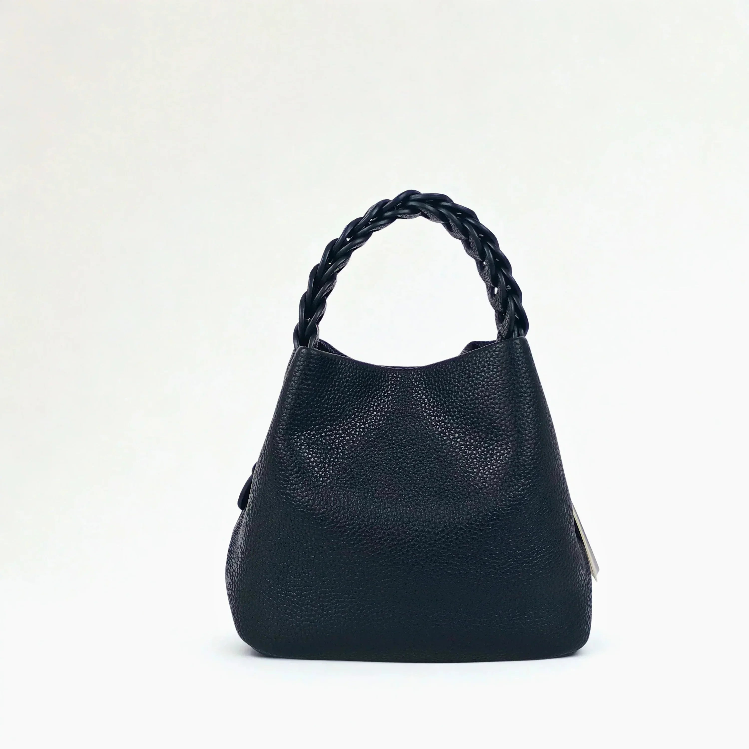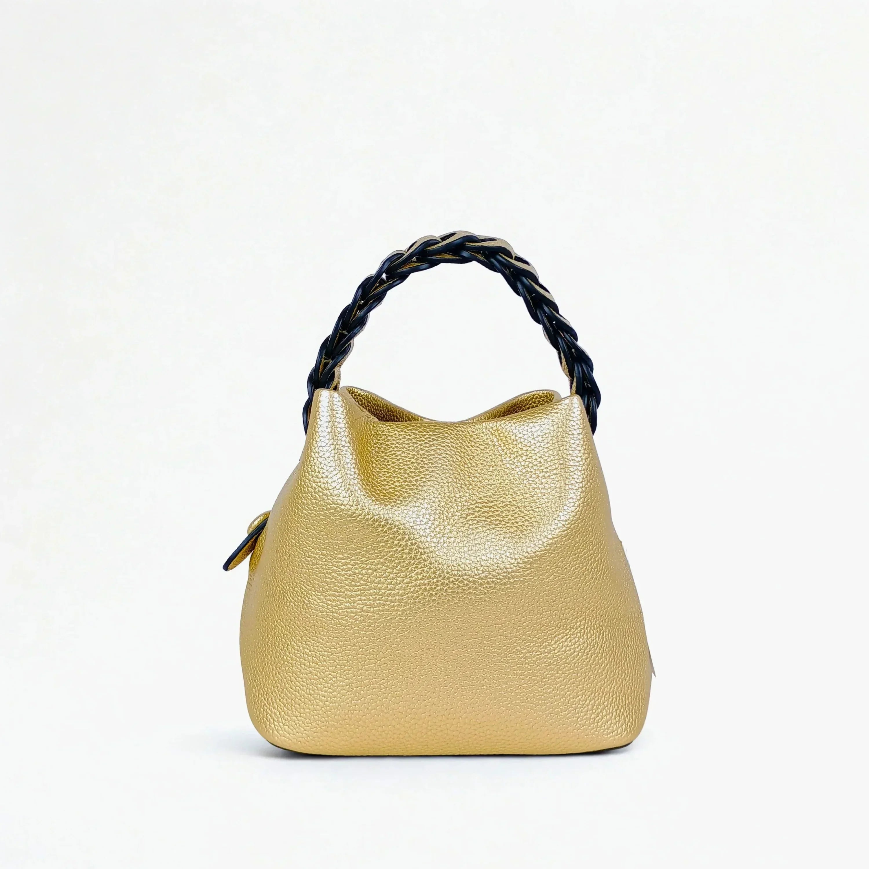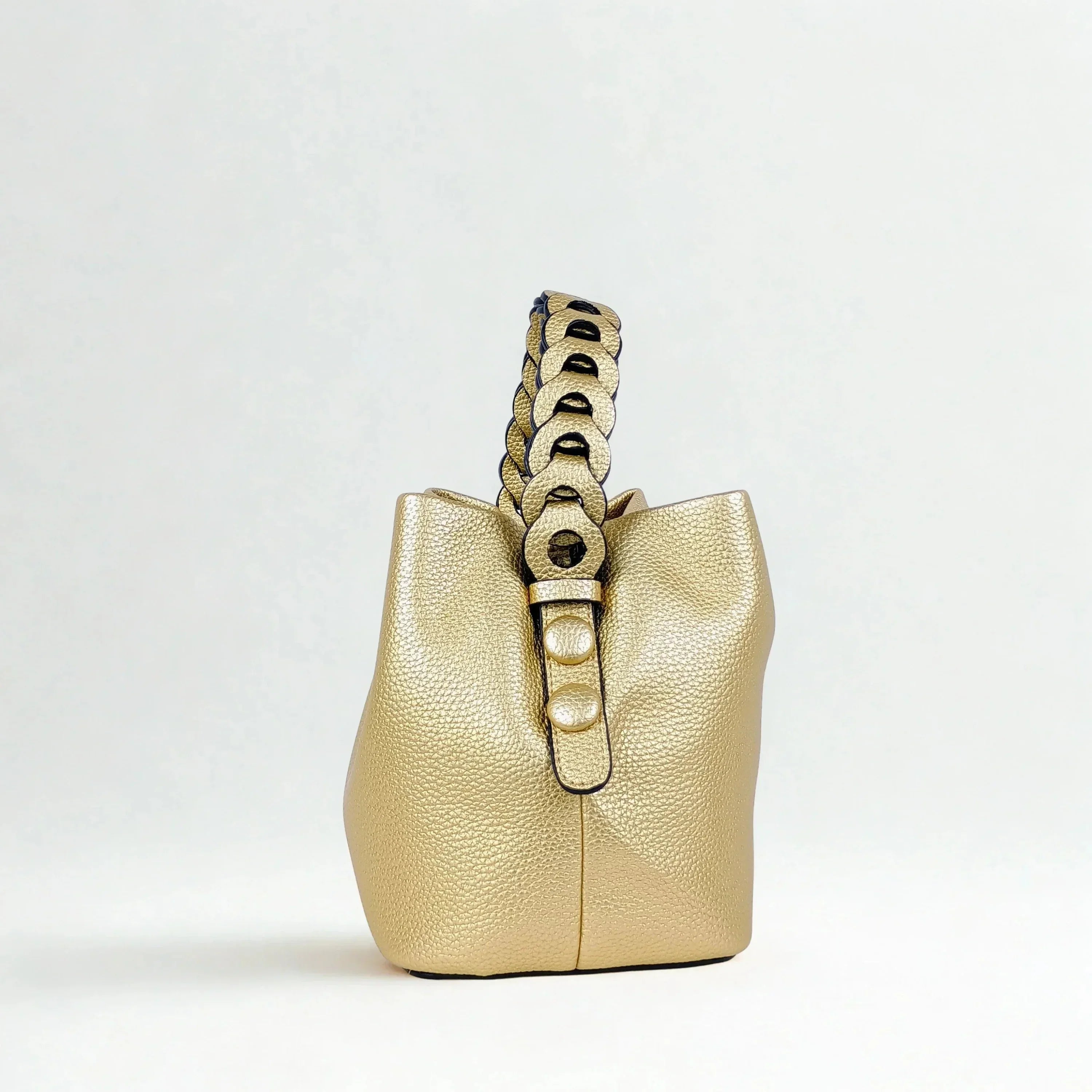Mustard Yellow Leather Bucket Handbag with Braided Handle